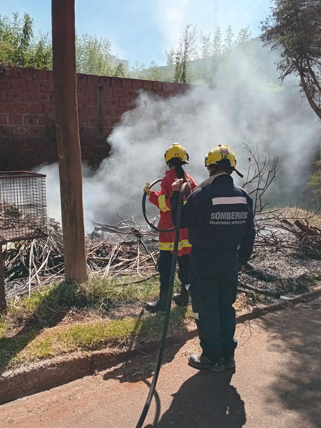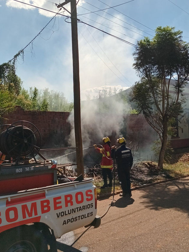MISIONES.UNO – En Apóstoles, un incendio originado por una chispa en un cable fue sofocado por Bomberos Voluntarios en la intersección de las calles Warenycia y Alvear.