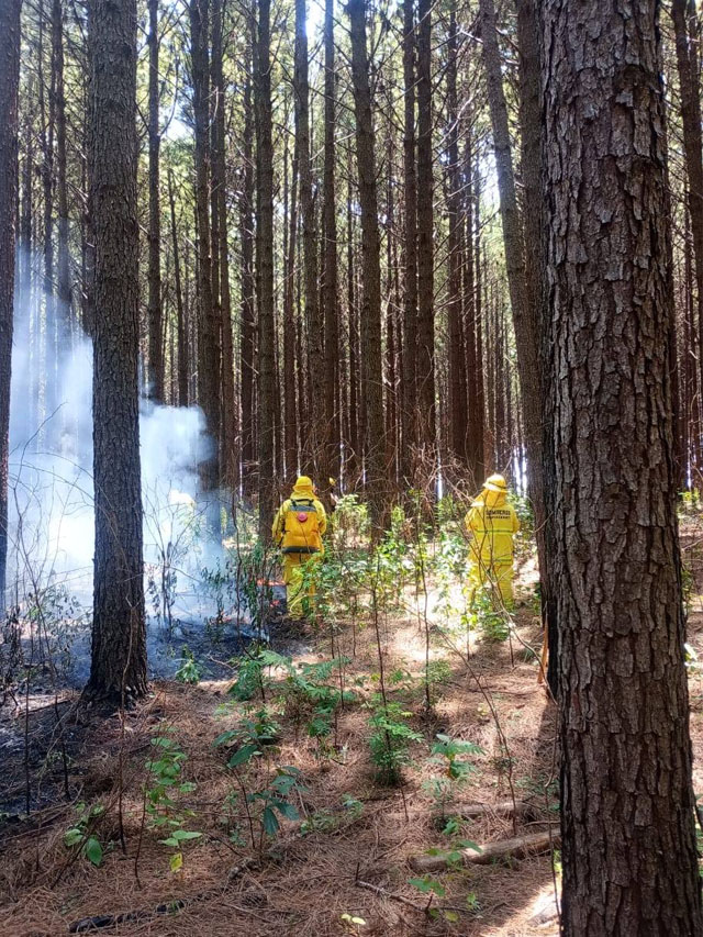 Bomberos y Policía trabajan para controlar incendio en lote de pinar