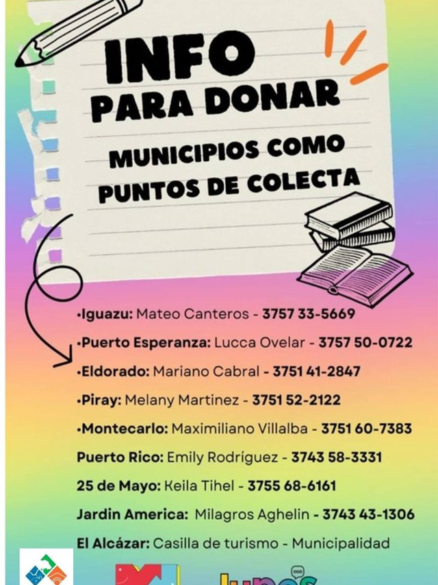 Quienes deseen colaborar pueden comunicarse con los referentes estudiantiles de su localidad, con el Centro de Estudiantes de su escuela o con los referentes de Juventud Municipal. En El Alcázar, las donaciones se reciben en la Casilla de Turismo.