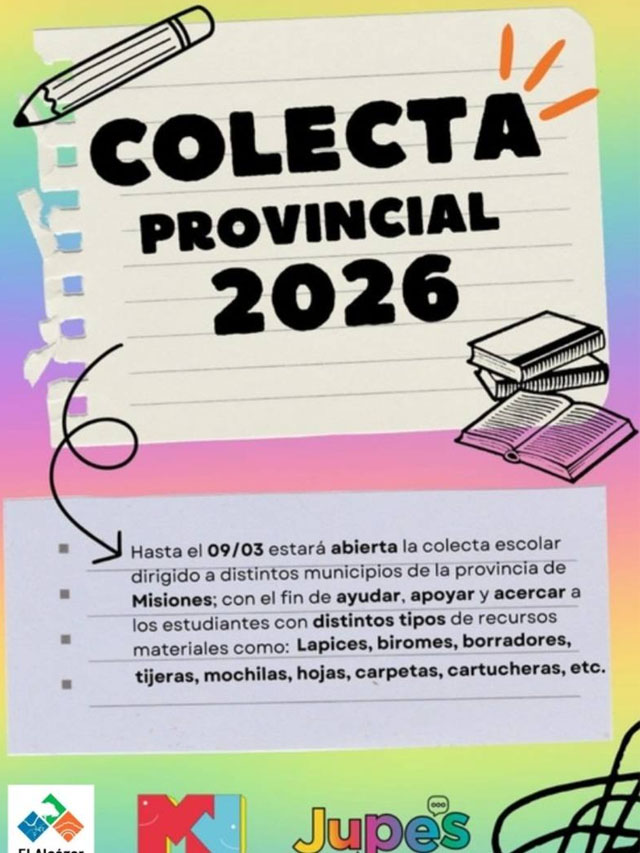 AGENCIA MISIONES.UNO | La JuPES y la Asociación de Centros de Estudiantes de El Alcázar impulsan una campaña solidaria para recolectar útiles escolares que serán entregados a niños y niñas de cara al inicio del ciclo lectivo 2026.