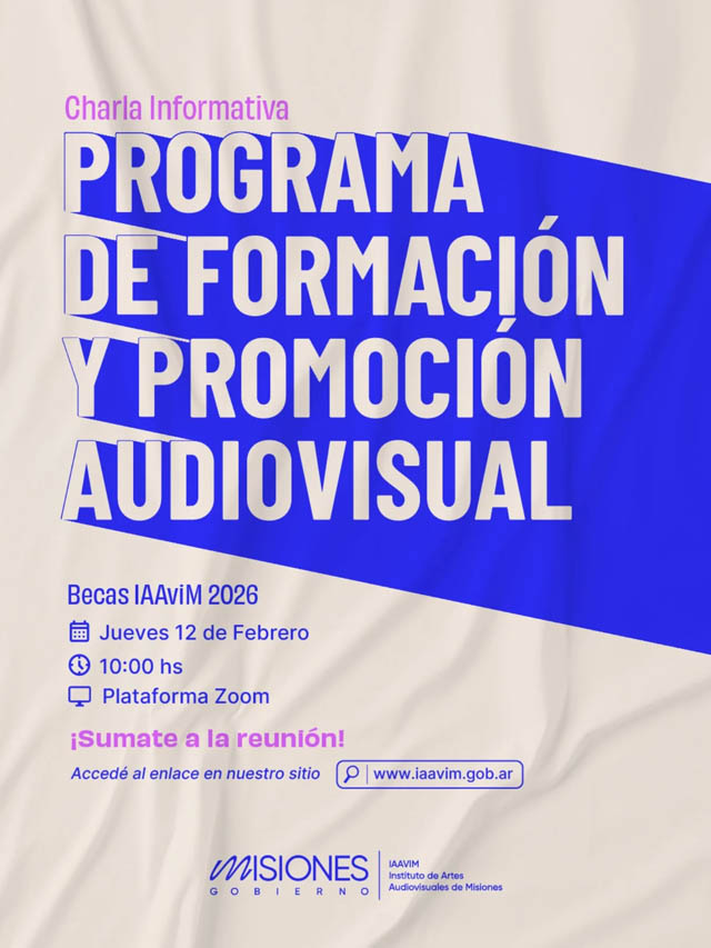 AGENCIA MISIONES.UNO | El Instituto de Artes Audiovisuales de Misiones (IAAviM), dependiente del Gobierno de Misiones, realizará una charla informativa destinada a realizadores y trabajadores del sector audiovisual de los distritos Paraná y Norte interesados en postularse a las Becas IAAviM 2026.