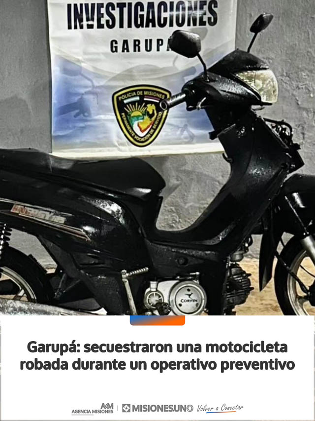 AGENCIA MISIONES.UNO | En el marco de operativos de prevención, la Policía de Misiones secuestró una motocicleta con pedido de robo en la localidad de Garupá.
