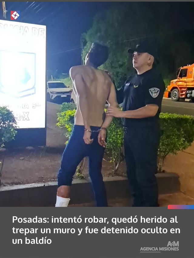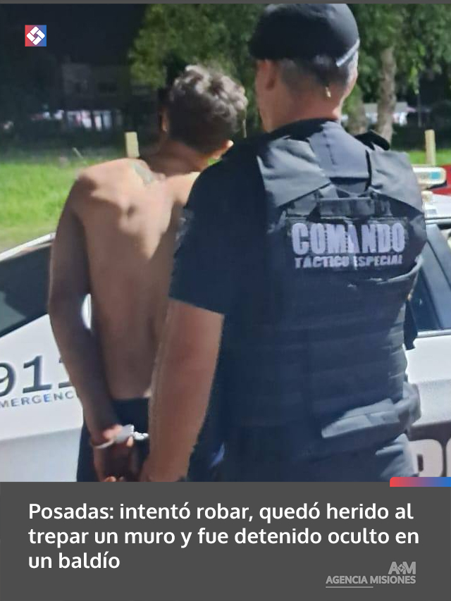 AGENCIA MISIONES.UNO | Un joven de 18 años fue detenido en Posadas luego de intentar cometer un robo en una vivienda, lesionarse al trepar un muro con alambre de seguridad y ocultarse en un terreno lindante.