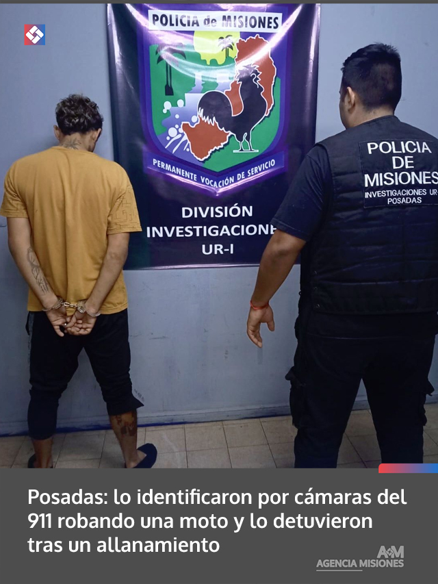 AGENCIA MISIONES.UNO | Un hombre de 28 años fue detenido en Posadas luego de ser identificado mediante cámaras de seguridad y el sistema de anillo digital como presunto autor del robo de una motocicleta.