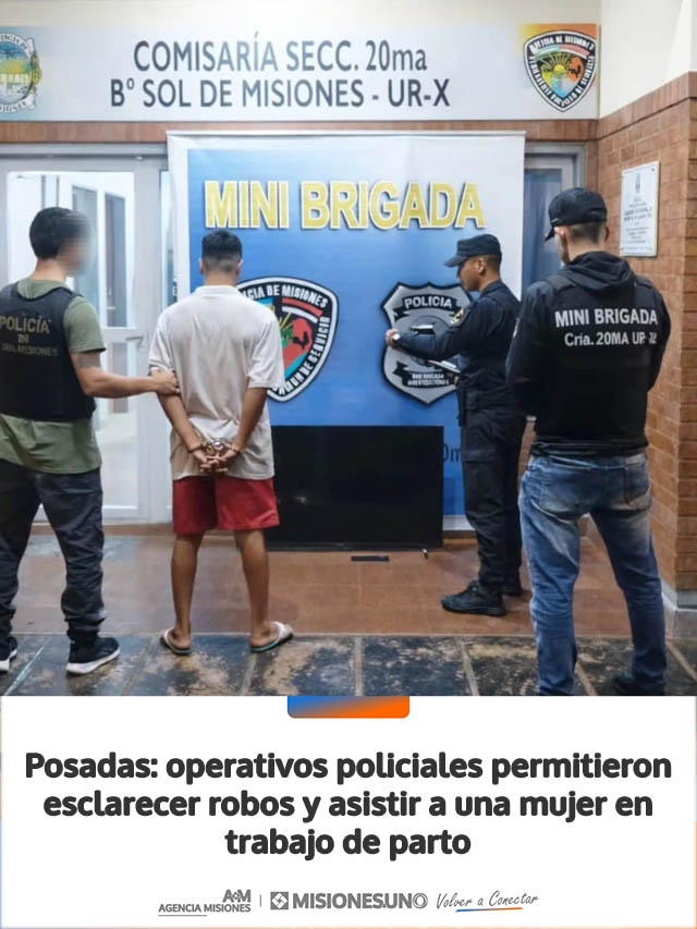 AGENCIA MISIONES.UNO | En el marco de un despliegue de seguridad en la capital provincial, la Policía de Misiones realizó múltiples procedimientos que permitieron esclarecer delitos, recuperar bienes y asistir a una mujer en trabajo de parto.
