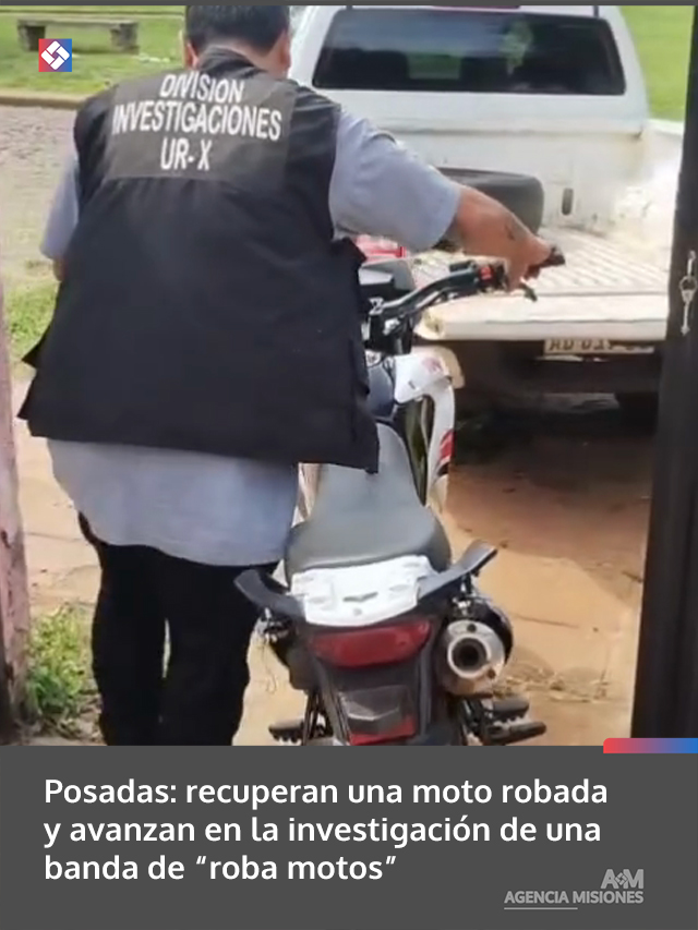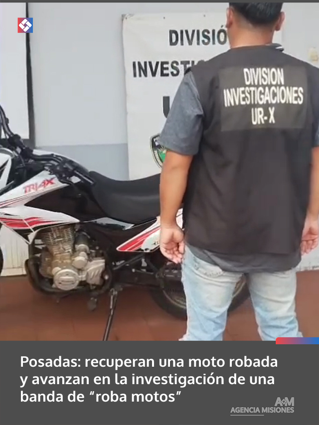 En el marco de tareas investigativas, efectivos de la División Investigaciones de la Unidad Regional X, en conjunto con la Comisaría 10ma, lograron recuperar una motocicleta robada y avanzar en una pesquisa que apunta a una banda dedicada al robo de motovehículos en la ciudad de Posadas.